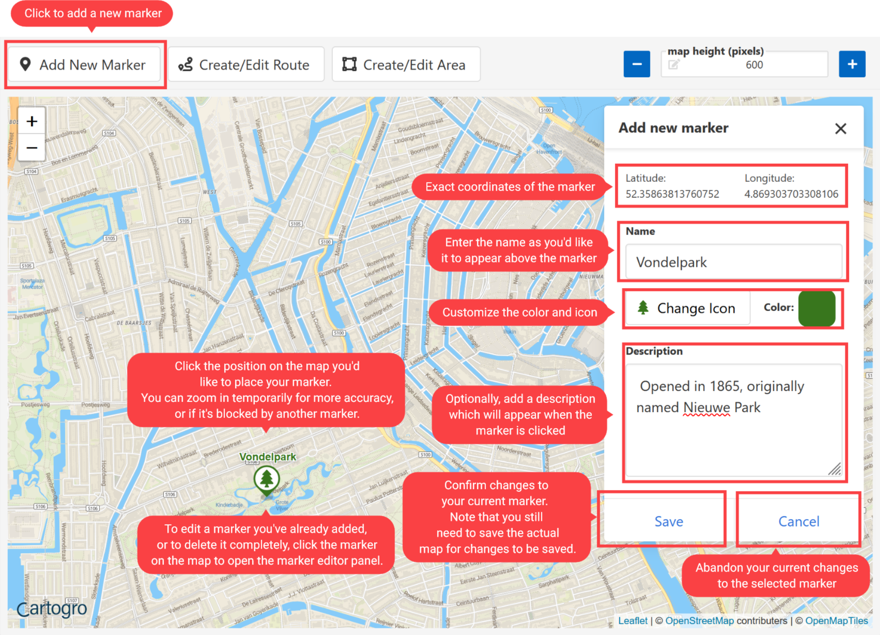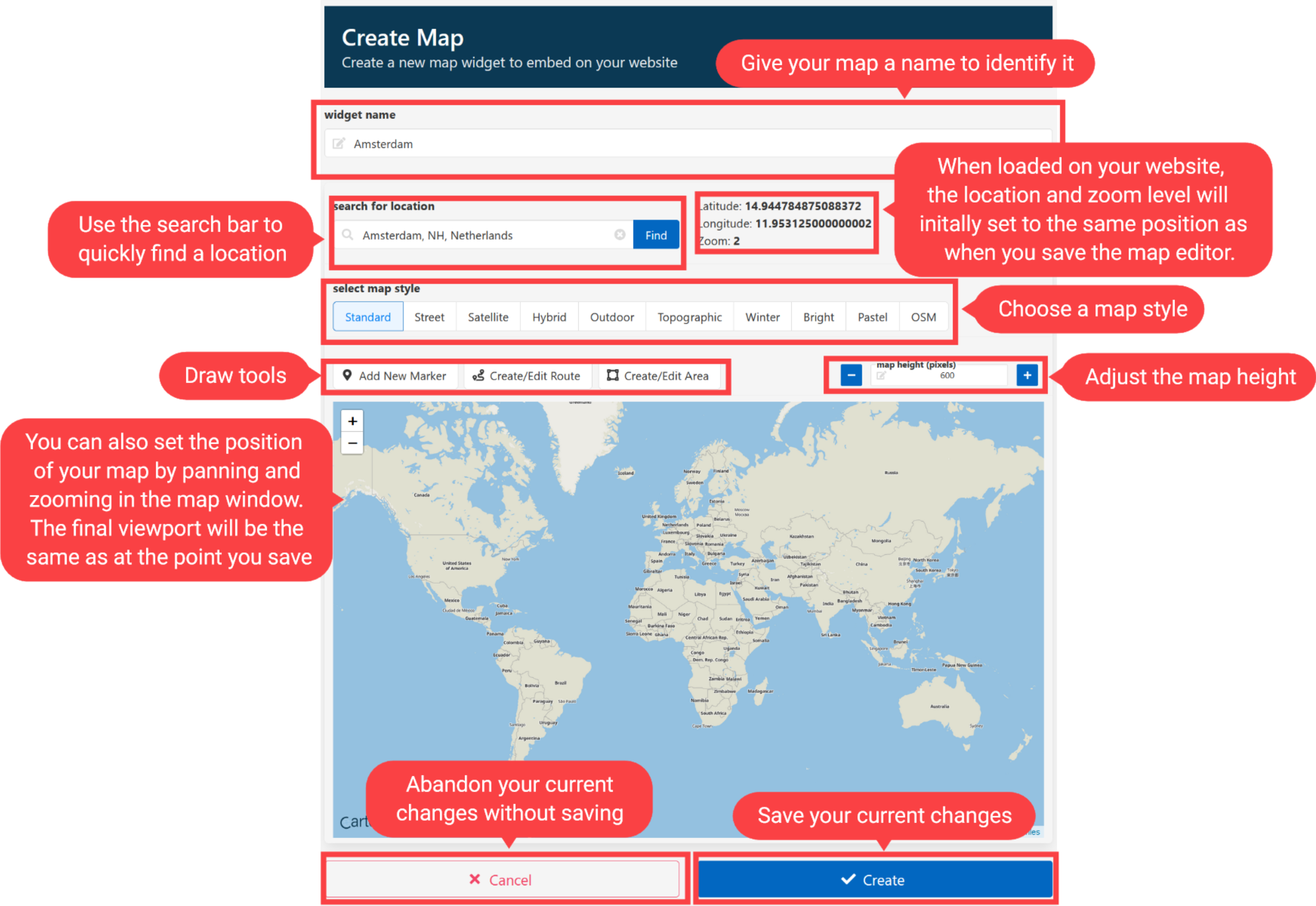 Remember that you will still need to save the actual map to save the widget with any markers you've added or updated. If you want to abandon your changes, click Cancel.