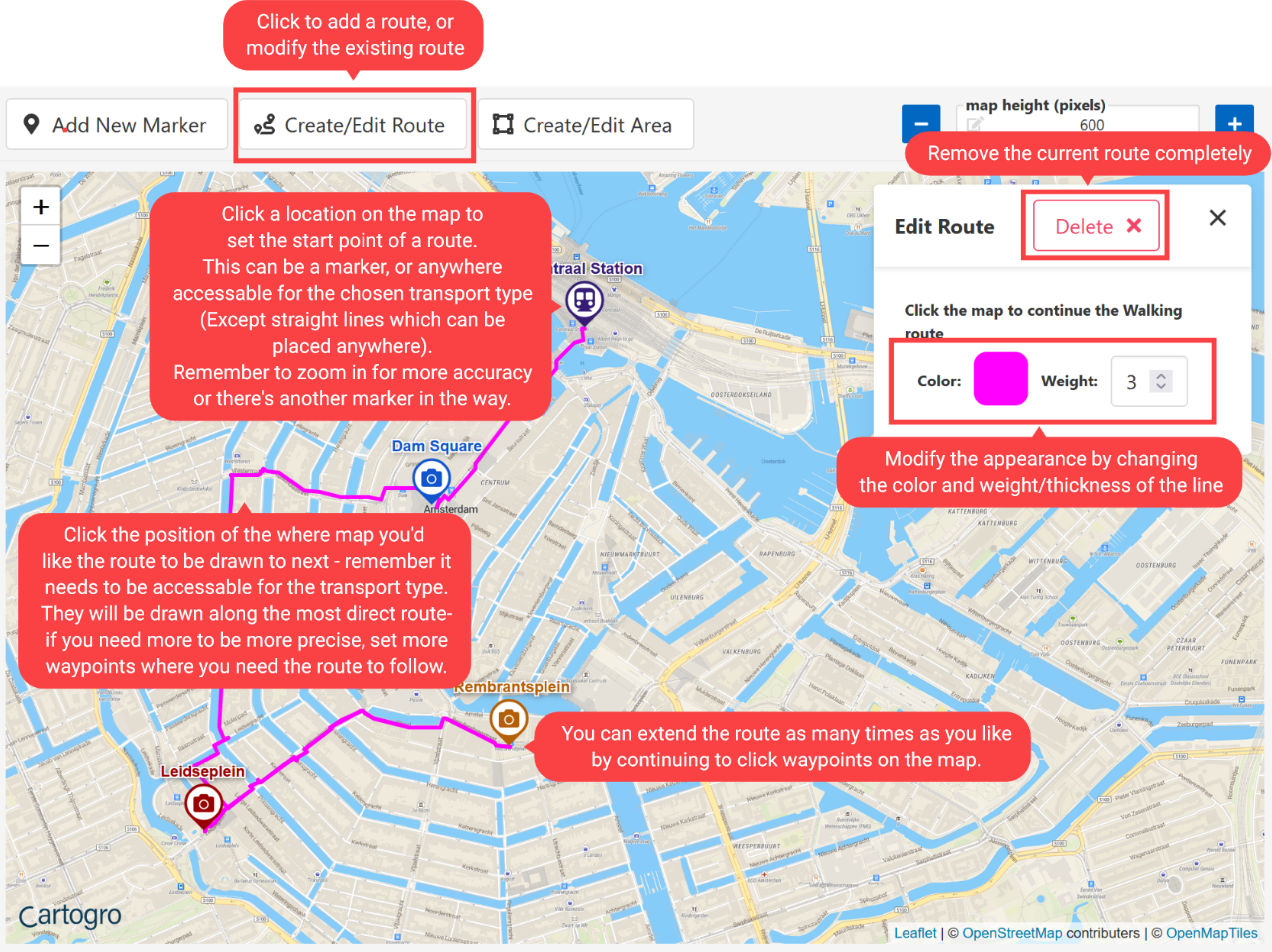 You can add the following types of route to your map - When you click Add/Edit Route, you can select the type of route you'd like to add from the panel.